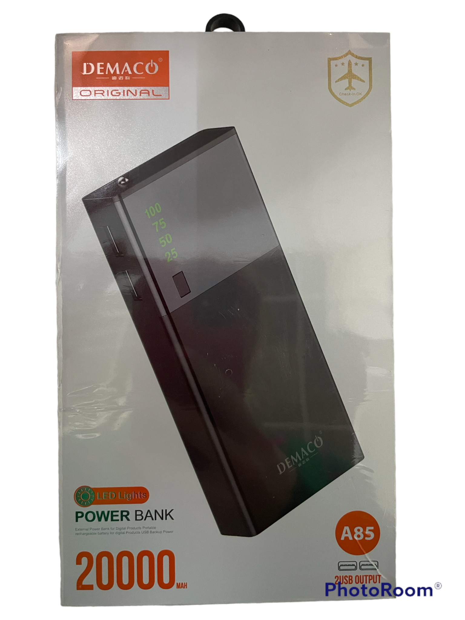 Внешний аккумулятор (Power bank) 3 USB Demaco A85 20000 mAh (черный) с фонариком